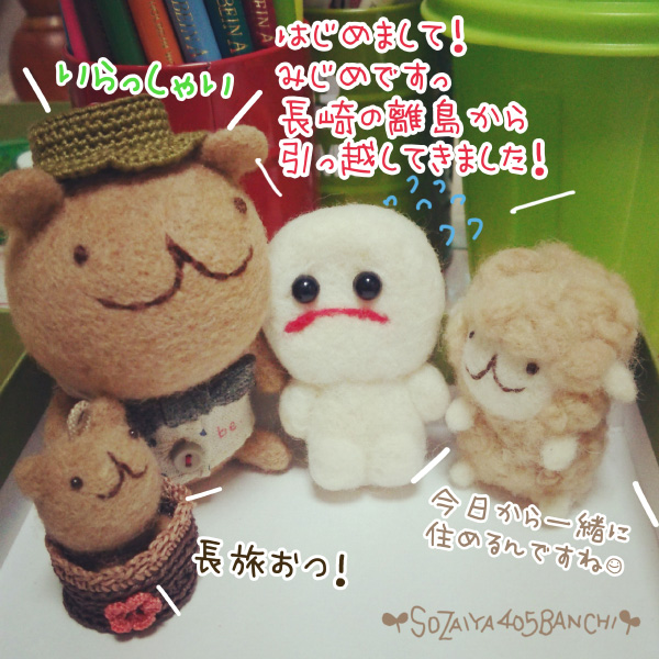 みじめ3人完成しました。1人すみっこでみじめな顔してる子いるけど。いつも笑ってられるわけないんだ。たまには暗い顔したっていいんだよ。ってことをみじめは教えてくれる( .. )#羊毛フェルト #みじめちゃん pic.twitter.com/QHSPaYuW8A— みじめちゃん@(さき ささくら) (@sakurairo1010) 2016年4月6日
