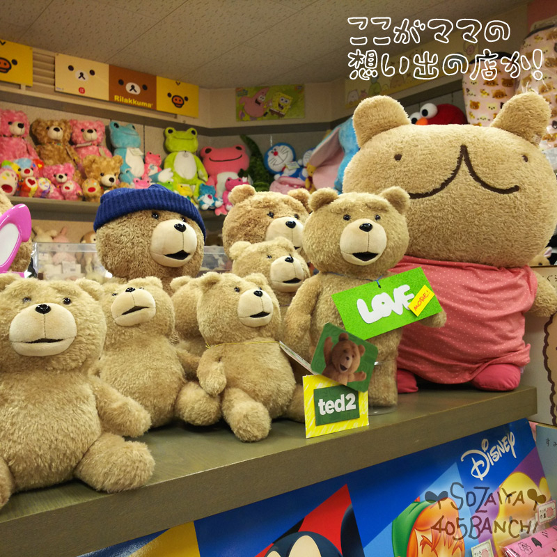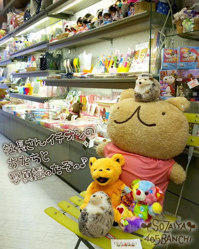 折角なので!店内のぬいぐるみと記念撮影するウゲロくま・でかぬいたん。
