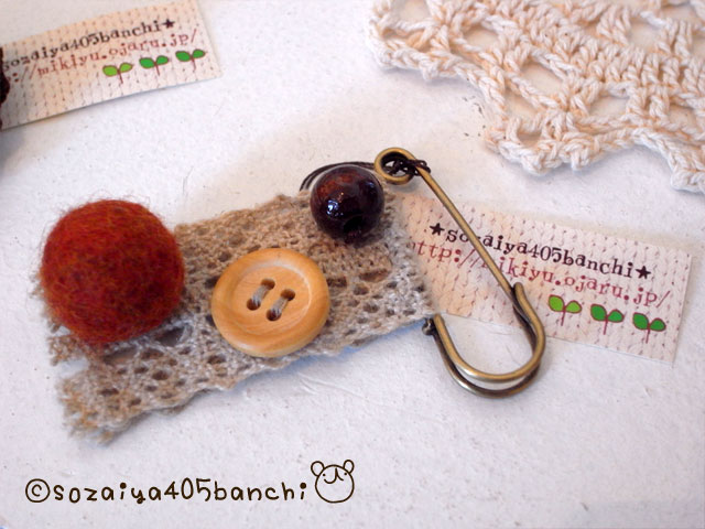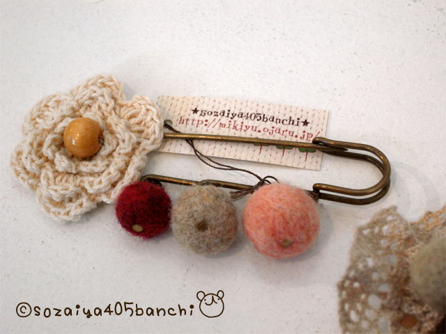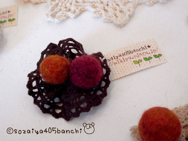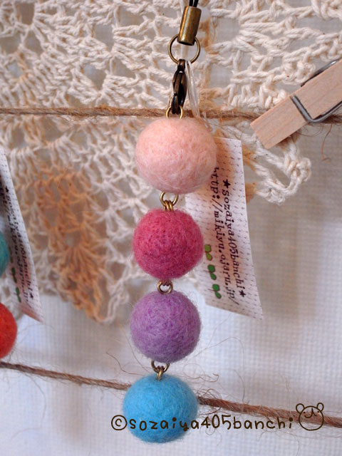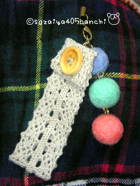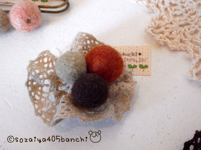 フェルトボールとレースリボンを使って色々作ってみました~。