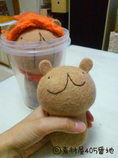 頭用はスポンジを丸く、体用は四角く切り、その上に羊毛を巻いてサクサク刺す!