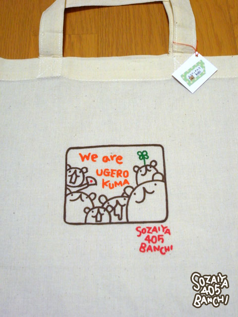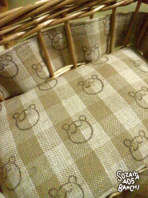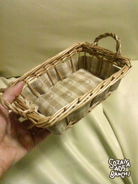もともとあったカゴに、ウゲロくま柄の布をつけてみました。