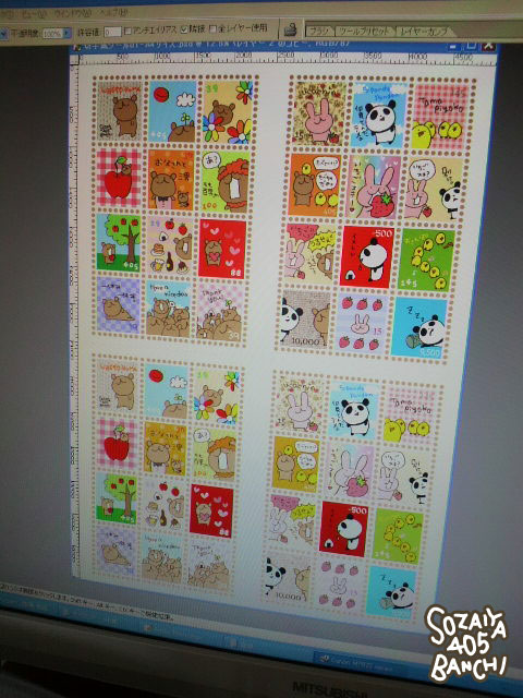 一つ一つ切って貼って顔書いて…の作業。計64(+3)枚!!