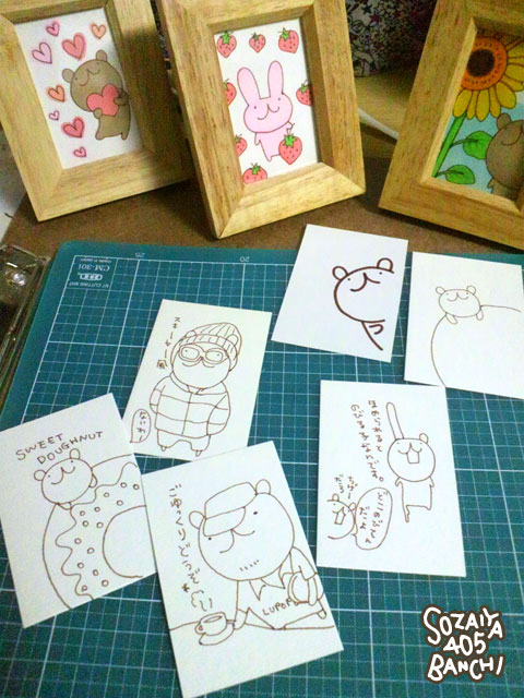 絵の大きさは、ハガキを4分割したサイズです。