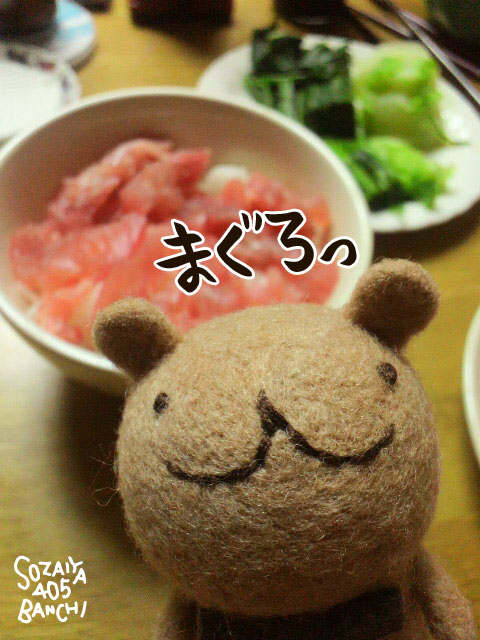 ひゃほぅ!!!!!!とゆーことでまぐろの刺身をご飯にのっけてミニ鉄火丼~