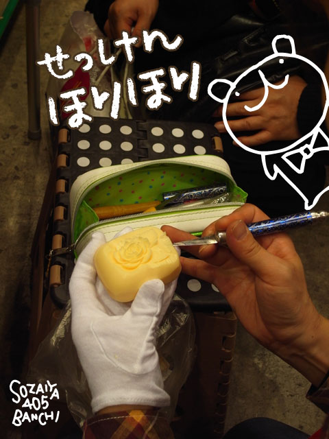 ちょうど、チビひろさんがソープカービングを実践している所でした!