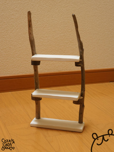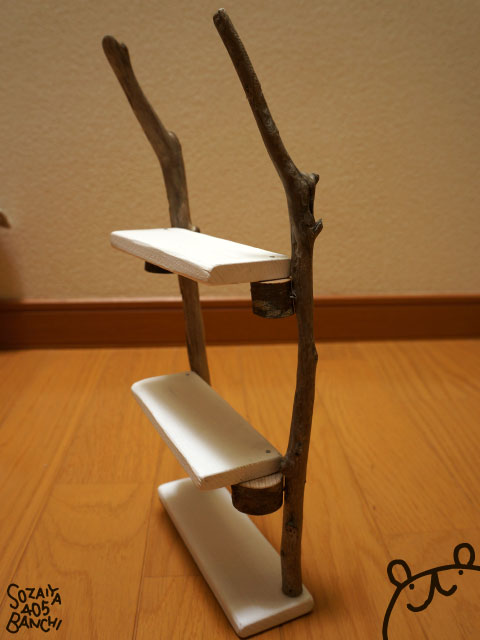 ↑ハンズで買った流木と、桐の板とで、ディスプレイ棚~!