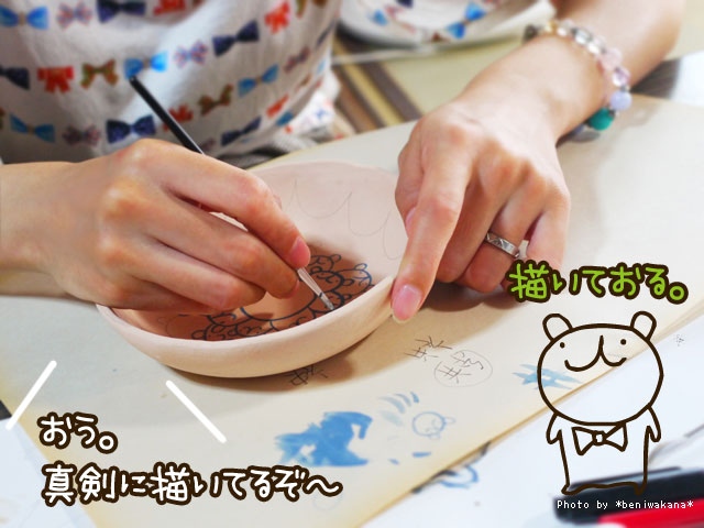 お皿や湯のみの絵付け体験ができるという事でー!!