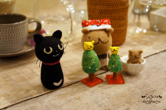 左側のかわいいツリーは、紅若菜さんの作品で