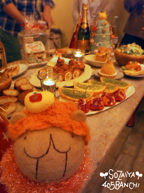 ↑クリスマスパーティー風にとセッティングされた食べ物たち~!