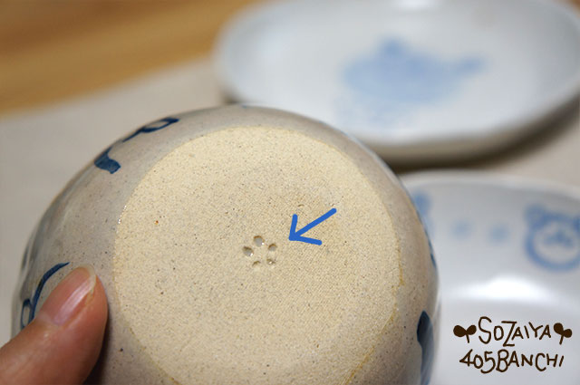 呉須で絵柄を描き、後から全体に透明釉薬を掛けます。