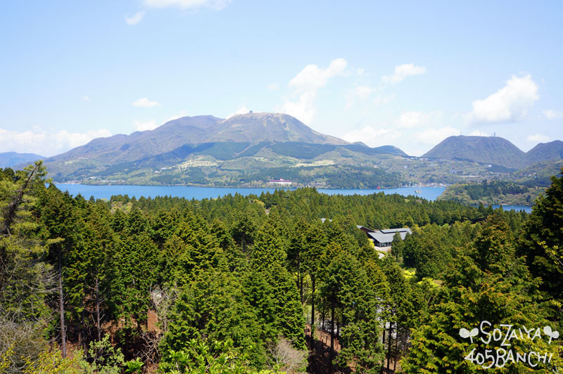 途中で寄ったどこかの山から撮った、芦ノ湖と駒ケ岳