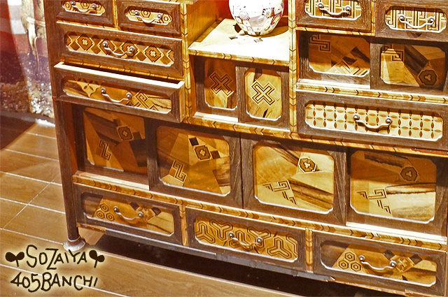 明治20~30年頃に制作されたもので、寄木文様がいたるところに!
