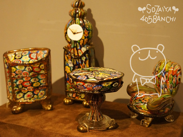 「モザイク美の世界」ヴェネチアン・グラスと里帰りした箱根寄木細工 という事で、ヴェネチアの「モザイク・グラス」と、明治時代に海外に輸出された「箱根寄木細工」の展示していました。
