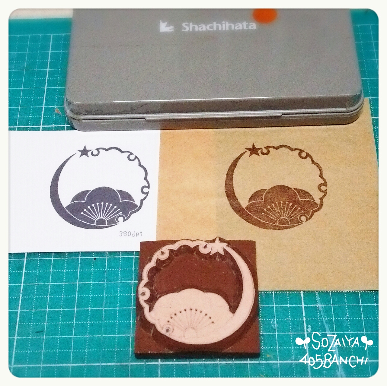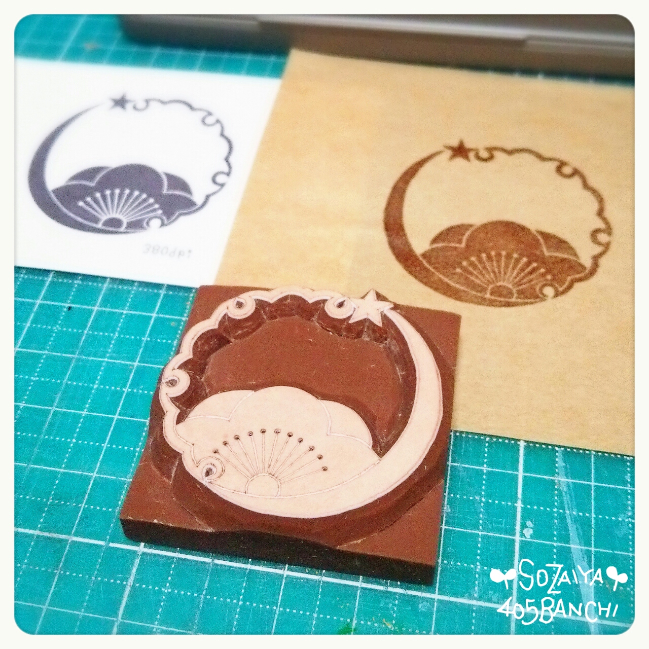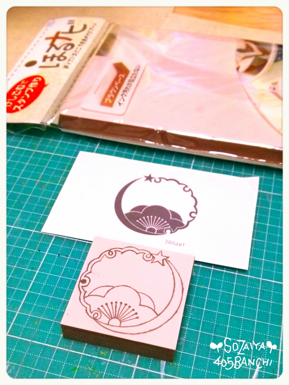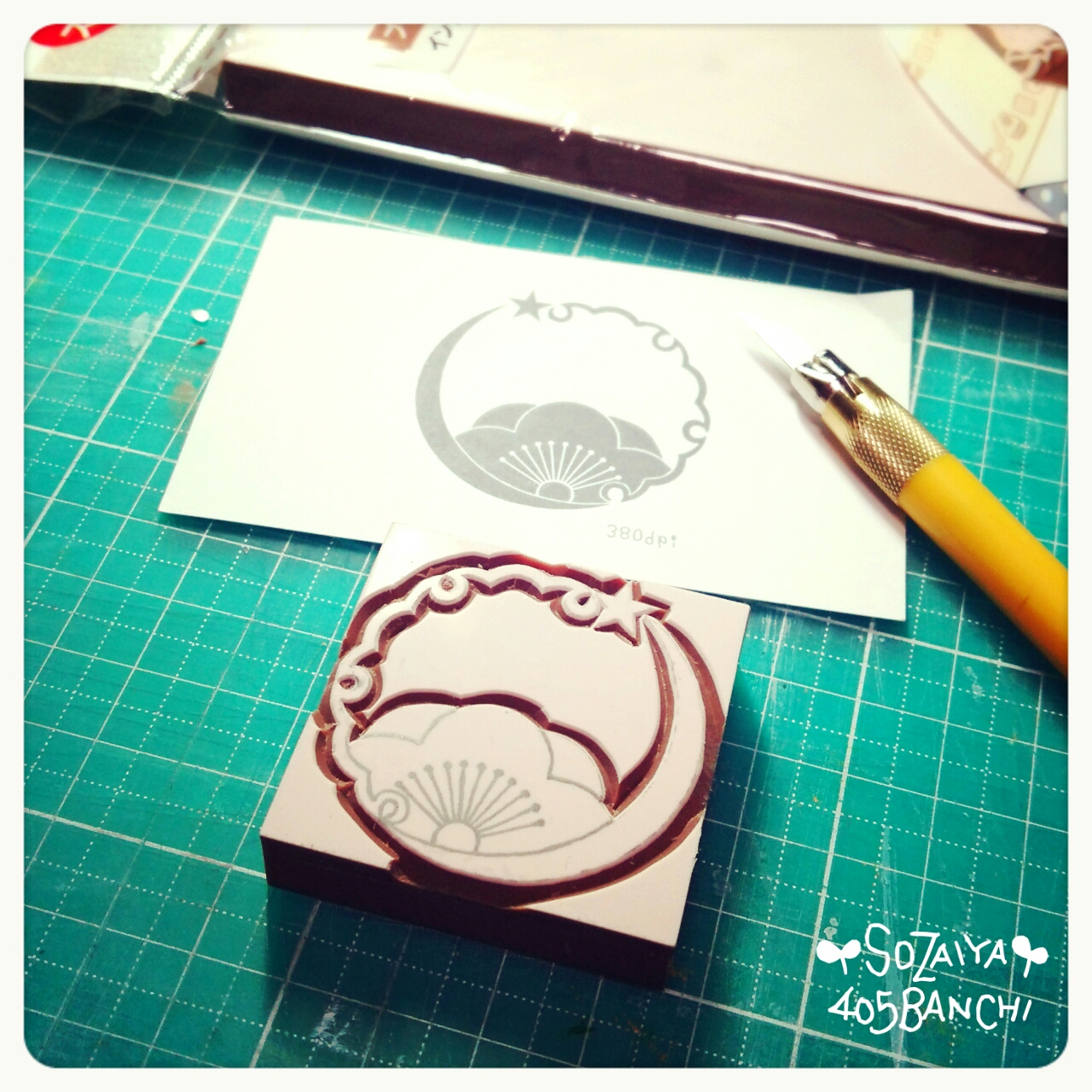 はんこに使ったのは、消しゴムはんこ用の消しゴムで、SEEDさんの「ほるナビ」です。>