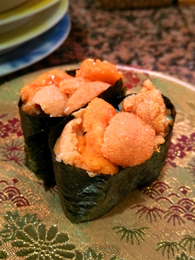 ↑回転寿司にて、「バフンウニ」を食らう。