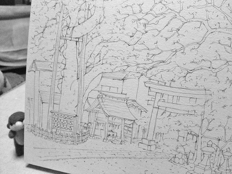 帰宅後、鉛筆で描いたものをしっかりペン入れ。