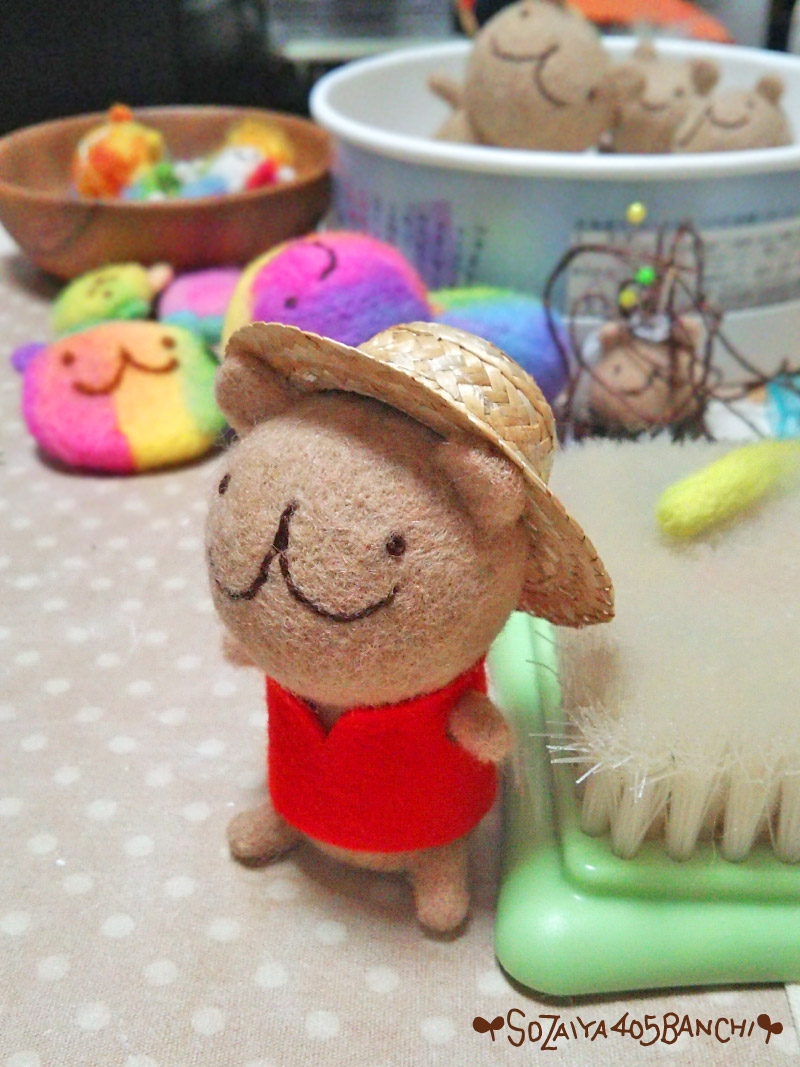 ちょうど我が家に小さい人形用の麦わら帽子があったので