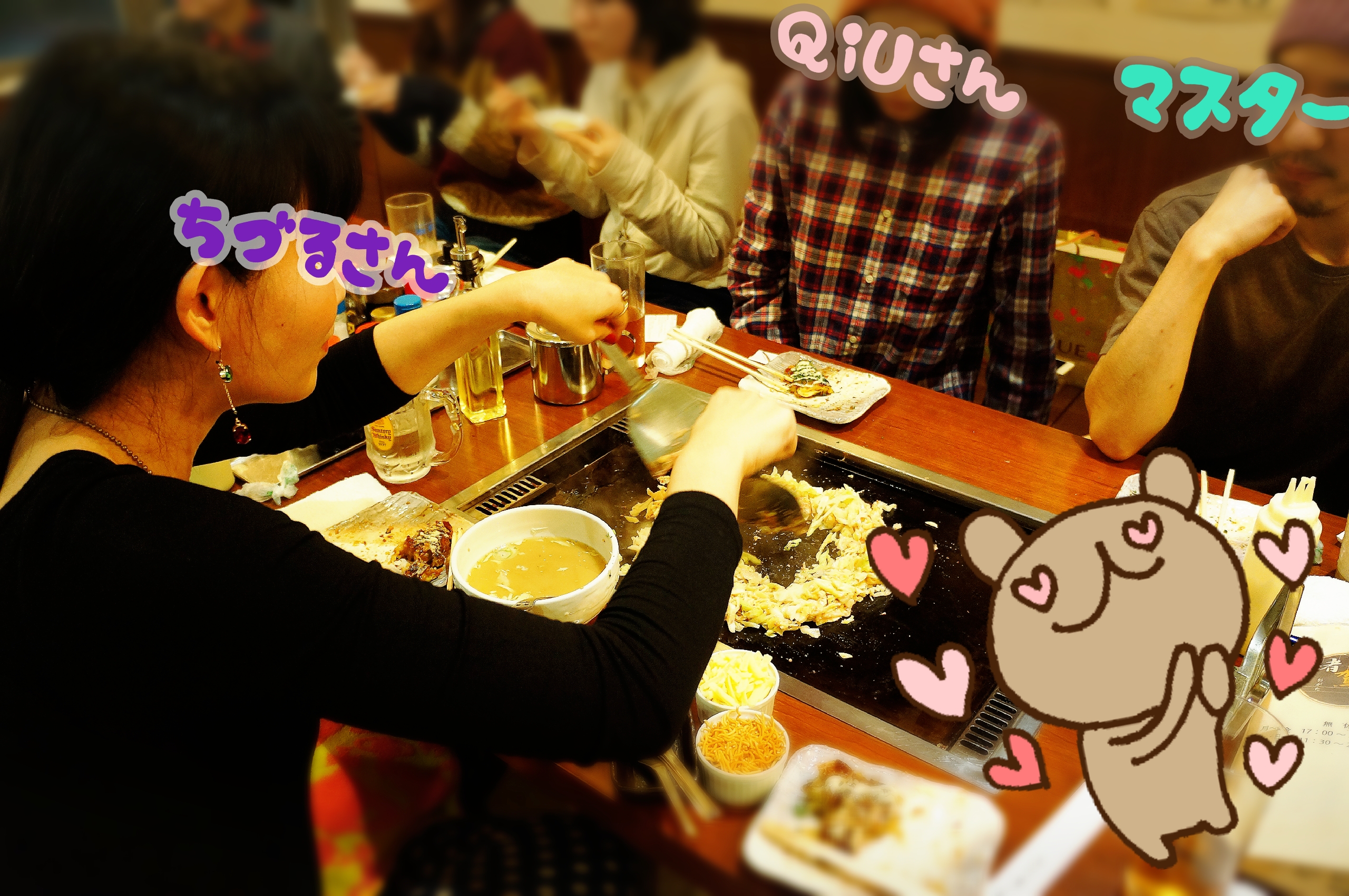 下町育ちのちづるさんが慣れた手つきでお好み焼きともんじゃを焼いてくれましてねー♡