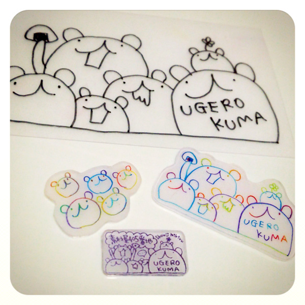 プラバンに直接描いた時と、焼いて縮んだあととでは色合いが微妙に変わります。