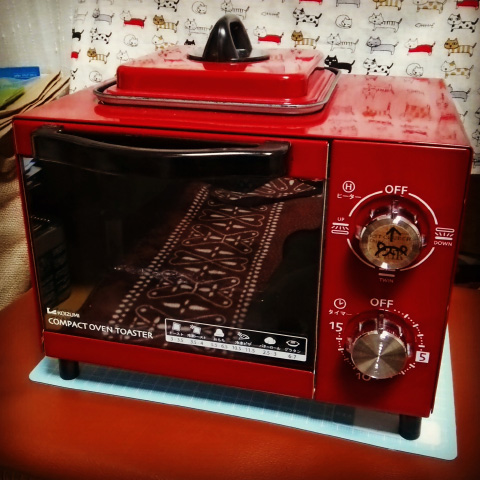 使ってるオーブントースターは、真四角で赤いやつ。
