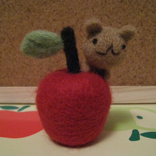 フェルティングを始めたばかりの頃に作ったリンゴの出来が