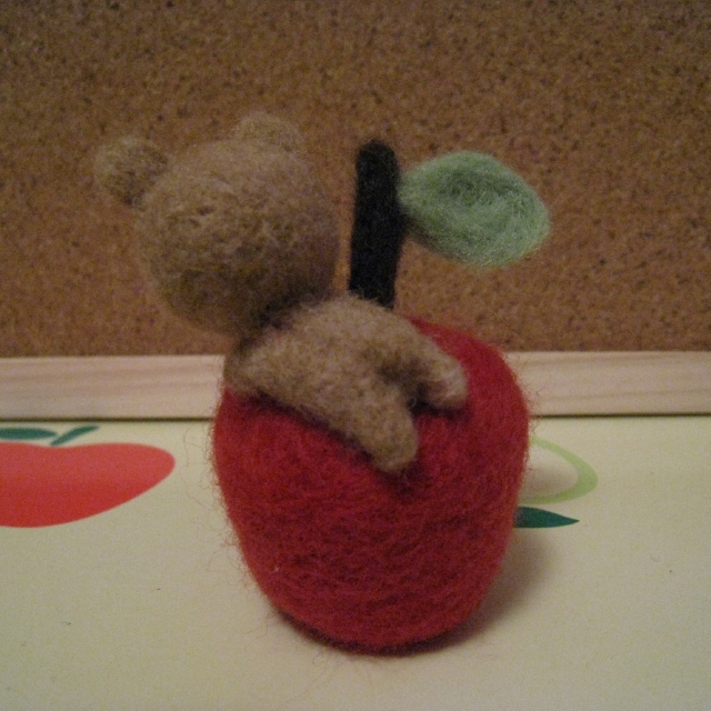 先にくまを作り、あとからリンゴにくっつける方法で。