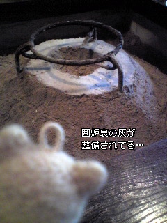 夫が囲炉裏の灰をキレイにしてました…(笑)