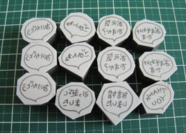 がんばってくださいね♪私はアフロとカボチャとネコちゃんのハンコ気に入りました♪