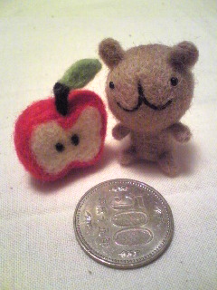 今日作ったリンゴと、サイズを比較するのに500円玉を置いて、写真撮ってみました。