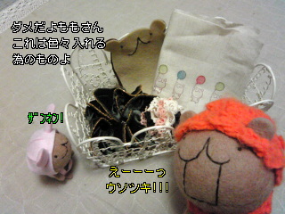 ↑おとウサん、森男用かごに捕らわれる(笑)。