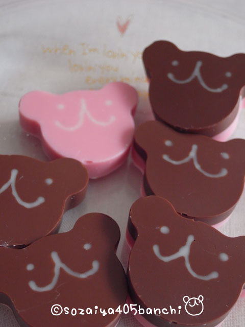 表がミルクチョコ、裏がイチゴチョコという2層タイプです。