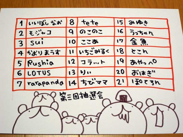 今回は、お申込み順に番号をふりました。