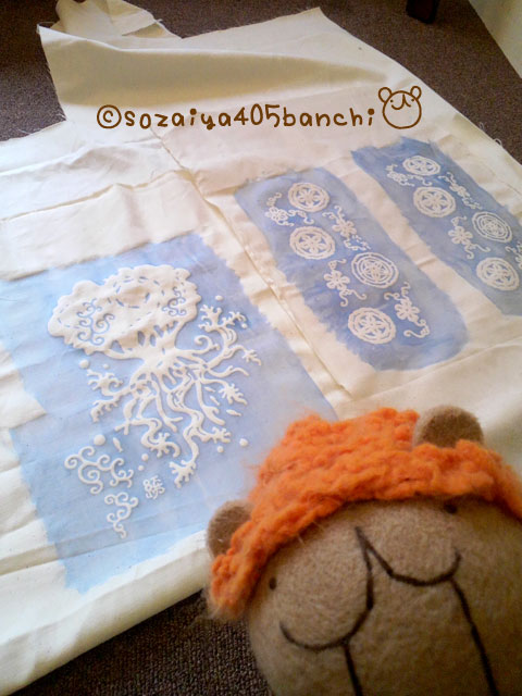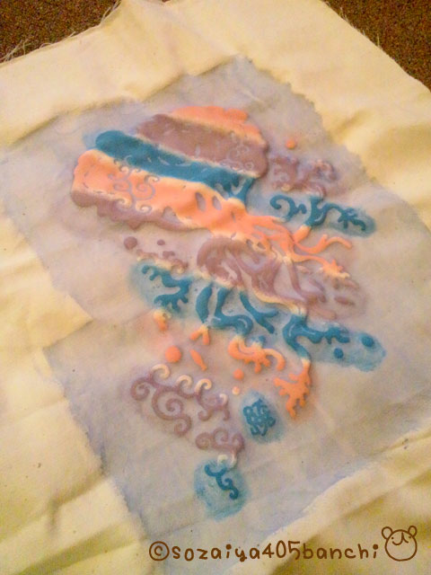 この状態だと、染色する時に布が浮いちゃうと言うかゆがんじゃうので