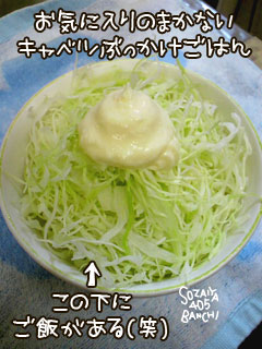 ↑私のお気に入りは、キャベツぶっかけごはん(マヨのせ)ですw