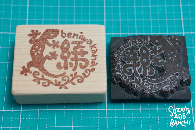 ↑左が持ち手になる木材。右が印面。