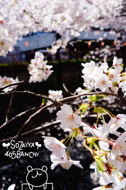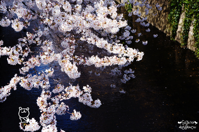 ↑目黒川の川沿い、左右ともに見事な桜並木!