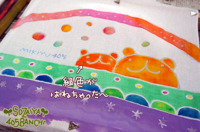 あと、水彩画のように、布の上でグラデーション風のにじみや混色ができちゃう!