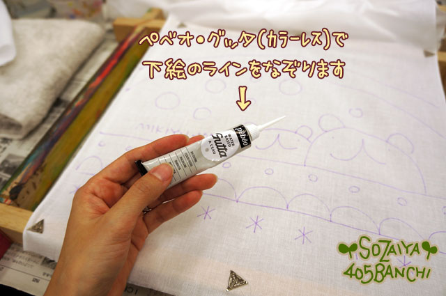ペベオの「セタシルク」という染色・手描き用水性絵具を使って