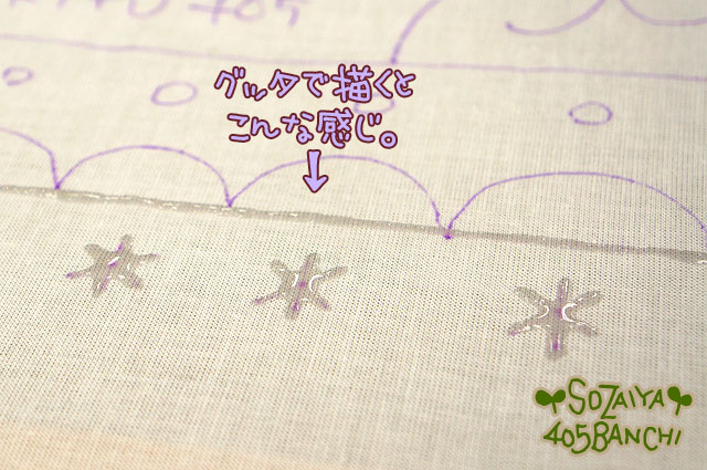 カラーレス・グッタは、紅型染めで言う「糊」と同じみたいです。