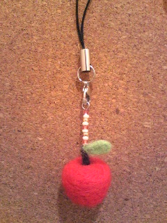 あと、以前作ったリンゴをストラップにしてみました。