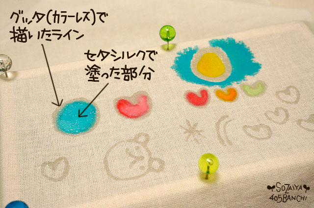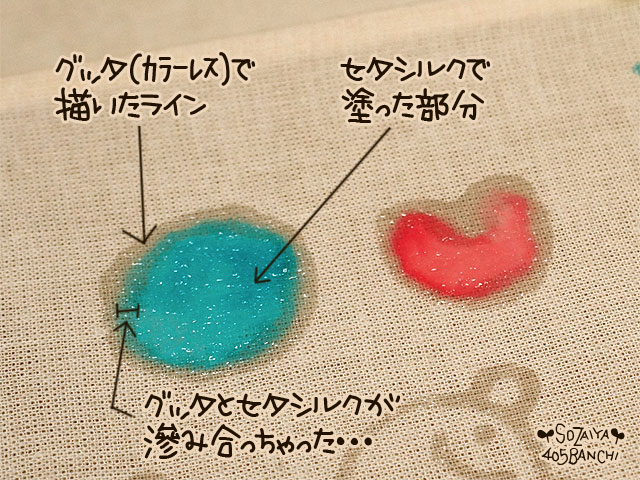 そのグッタがセタシルクとにじみ合ってしまったという失敗!!