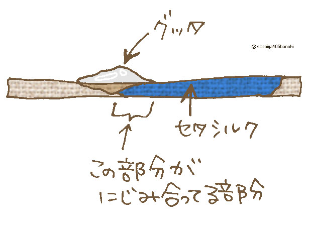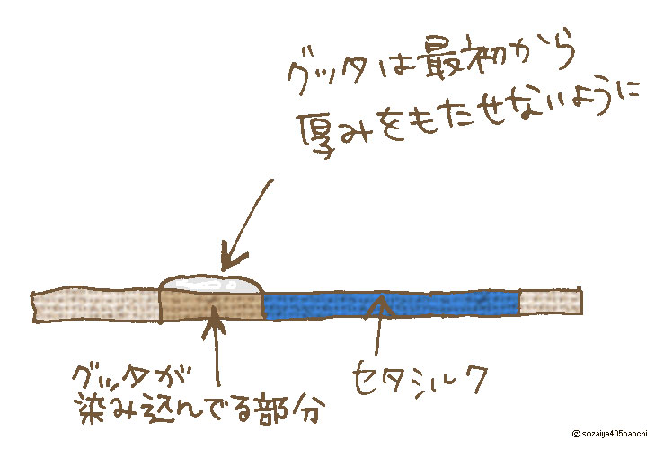 それにより、セタシルクがその部分の繊維へ染み込んでいくことを防げるのでーす。