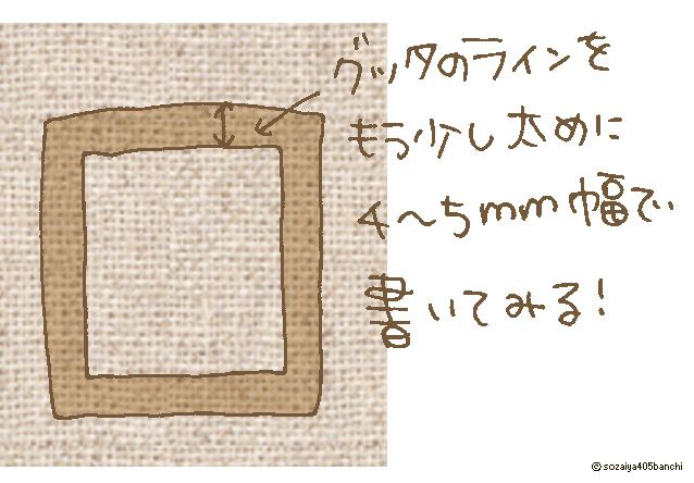 という事で今度は、グッタのラインをもう少し太めに書いてみることに。