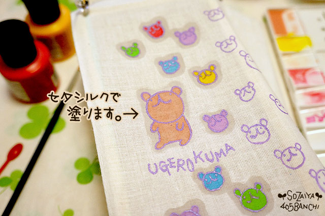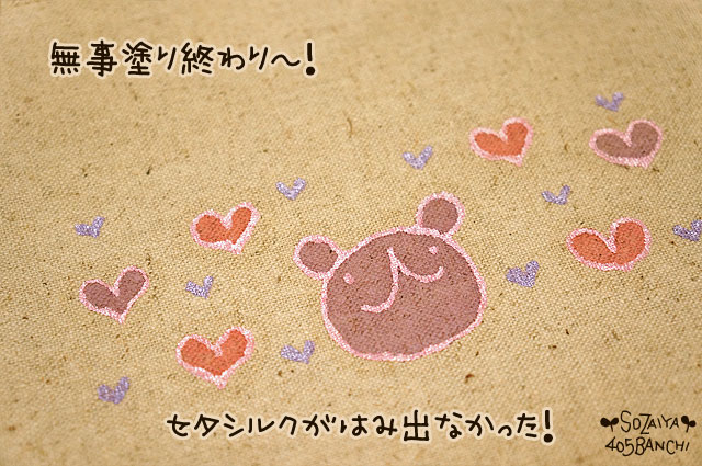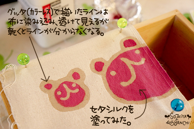 カラーレスグッタのおかげで、セタシルクが染み出すこともなく