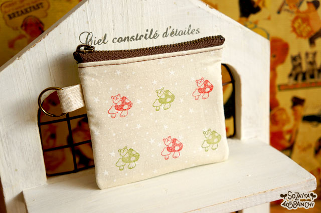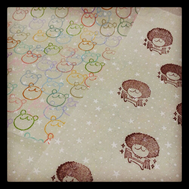 その中から、くまときのこ柄を使ってポーチ作り~。