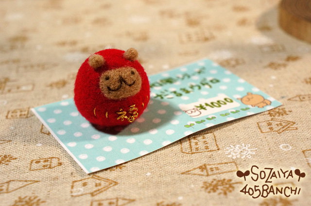 お腹の部分には、金色の糸で「福」という文字を刺しゅう。