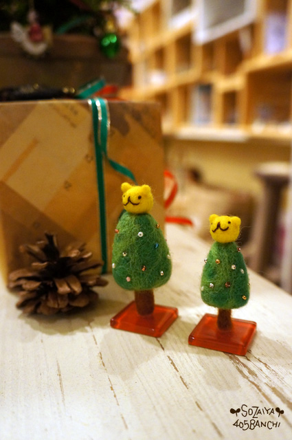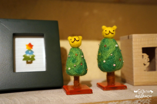 左側のかわいいツリーは、紅若菜さんの作品で