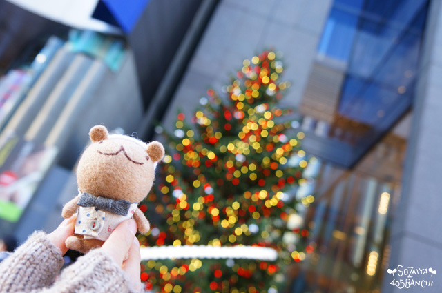銀座の冬の風物詩「ミキモトのクリスマスツリー」をバックに。