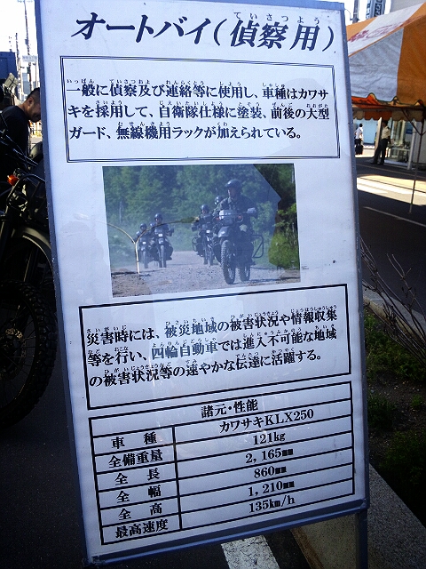 自衛隊の車やバイクが展示されていましてね!