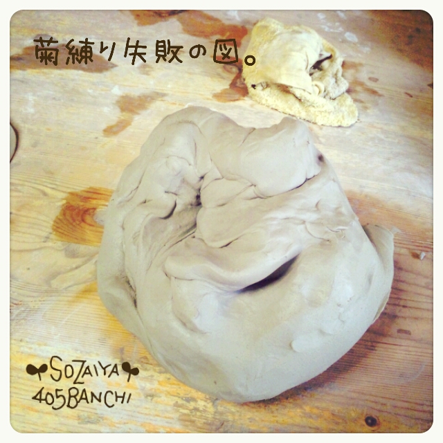 (菊練り=粘土の硬さを均一にし、適度な粘り気を与え気泡を抜く作業のこと)